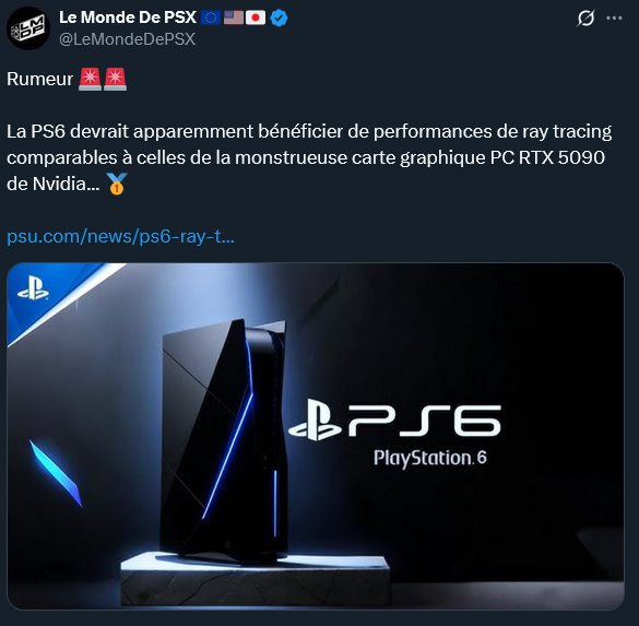 la rtx 5090 coute +/- 2.000euros... Même si d'ici là le prix va diminuer, la PS6 serait donc a +/-1500 euro .... Après tout ce prix serait +/- crédible ... la PS5pro coute 1.000euro... Quand on pense qu'il y a des familles qui doivent choisir entre manger ou payer leurs factures... -