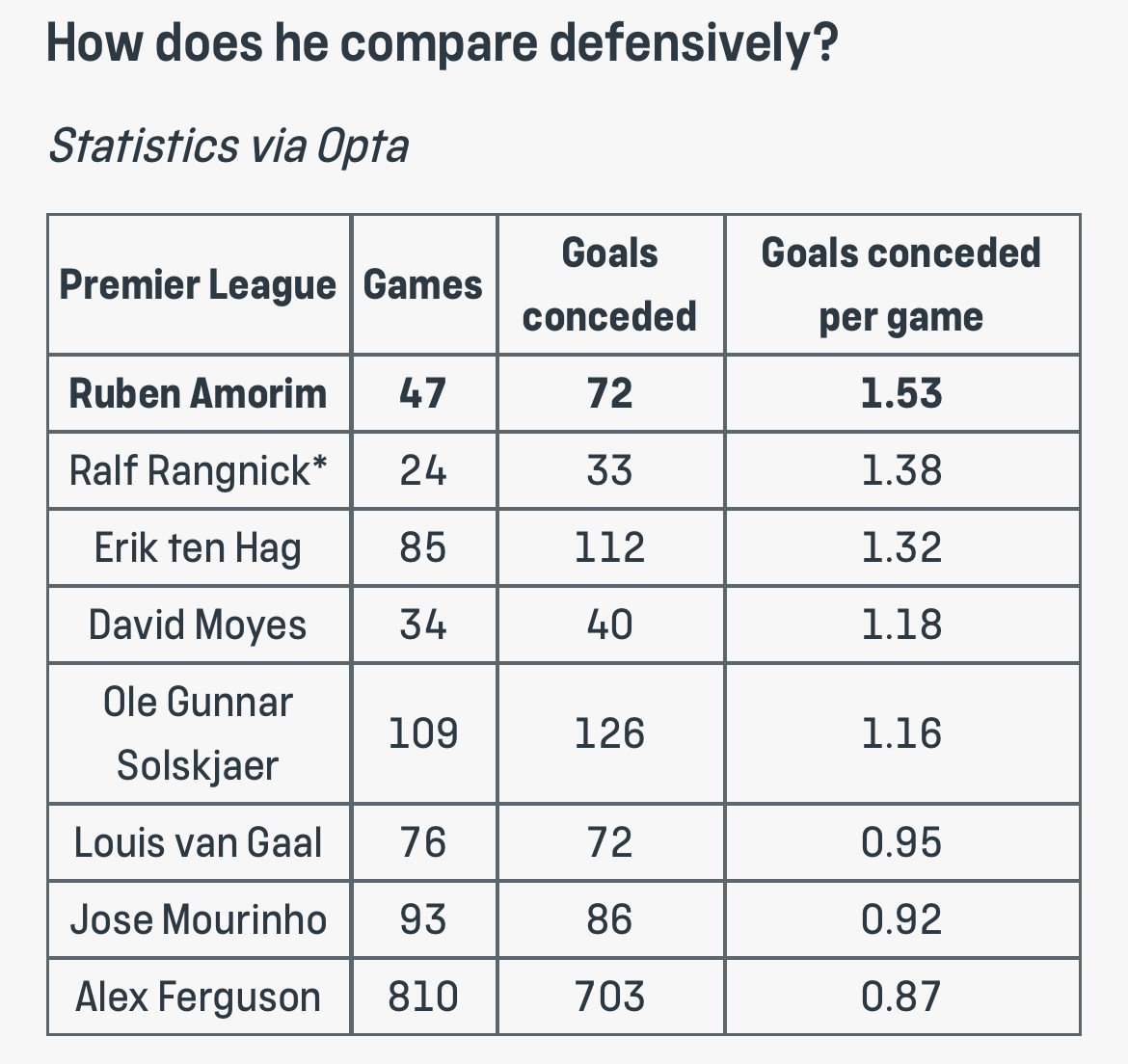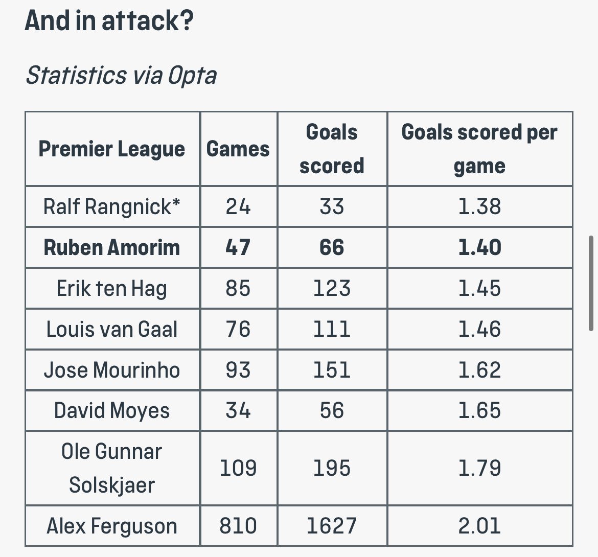 Red panther Posté(e) hier à 10:25 Partager Posté(e) hier à 10:25 On parle du super intérim d'OGS, on oublie de dire que derrière il fera le pire début de saison de MU depuis 1986. 21% des défaites à Old Trafford dans l'histoire de la PL sont sous sa direction. Au final, Ten Hag possède un pourcentage de victoire supérieur à OGS , même si c'est léger, les faits sont les faits. Un 4231 qui soit disant ne convient pas non plus et zéro titre. On n'a soit disant pas de fond de jeu, pas de résultat et c'est ça qu'on ramènerait pour remplacer Amorim ? Et j'en n'ai rien à carrer que ça soit pour un intérim : il reste 19 matchs, mathématiquement c'est plus qu'il n'en faut pour atterrir en Championship. Je viens de relire les 20 dernières pages de son topic sur le forum, c'est à mourir de rire... j'ai aussi l'impression qu'OGS était surtout une bourse molle, dans le vestiaire et en dehors. Le genre à pas trop faire de vague, ni avec les joueurs, ni avec le board. Le candidat idéal en somme, un chien-chien à sa mémère d'INEOS qui ne viendra pas se plaindre, perturber les concours de quéquettes du board et la gestion bancale du stars de l'organigramme puisque manifestement, les divas ont quitté les vestiaires pour se retrouver en tribune. Y a qu'à voir le positionnement opposé qu'a eut son successeur, Rangnick, et la manière dont il l'a payé. 2 Bienvenue à Manchester United : "La théorie, c'est quand on sait tout et que rien ne fonctionne. La pratique, c'est quand tout fonctionne et que personne ne sait pourquoi. Ici, nous avons réuni théorie et pratique : rien ne fonctionne... et personne ne sait pourquoi !" Albert Einstein. Lien vers le commentaire Partager sur d’autres sites More sharing options...
